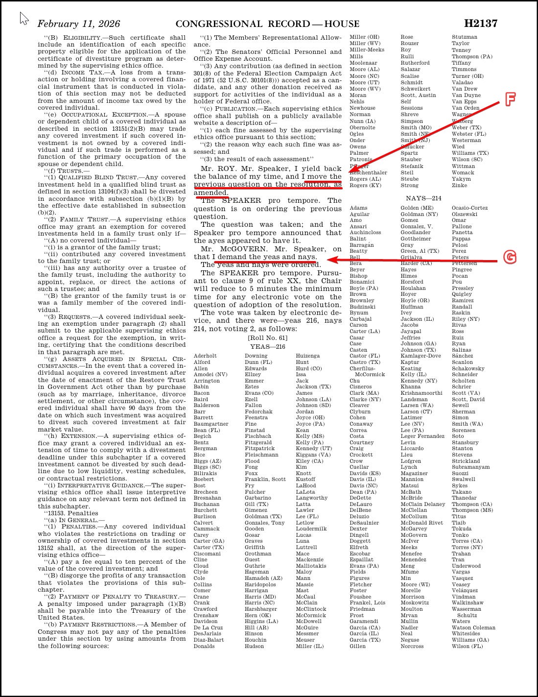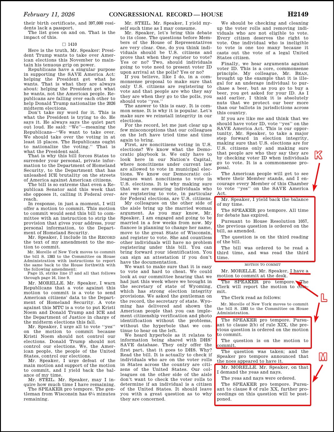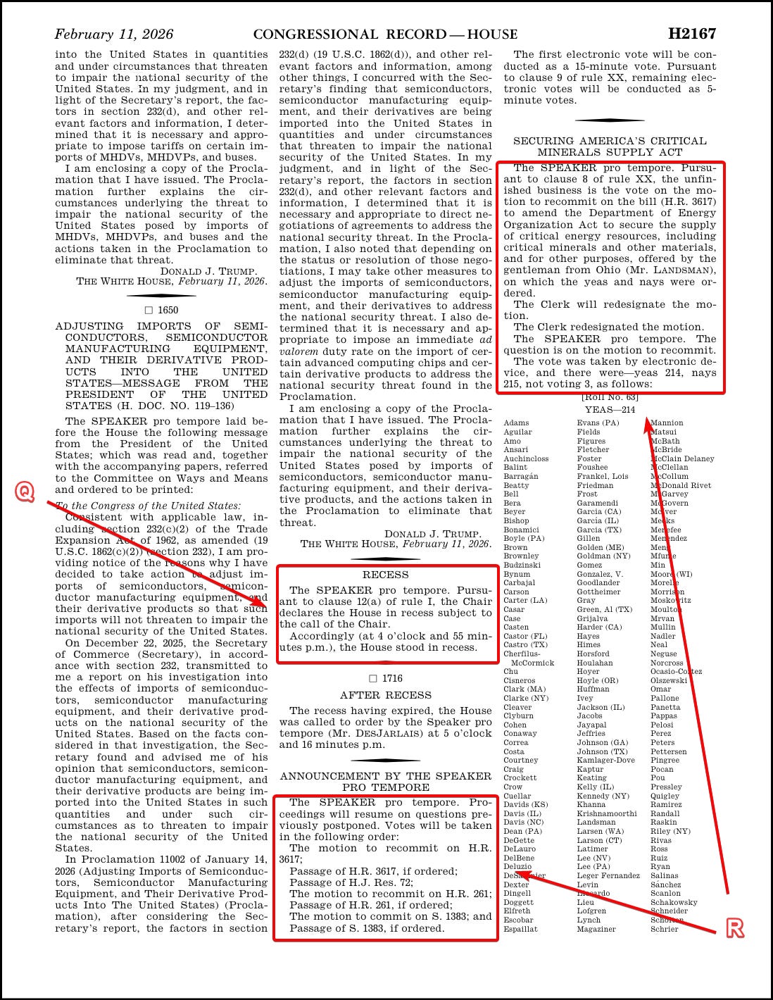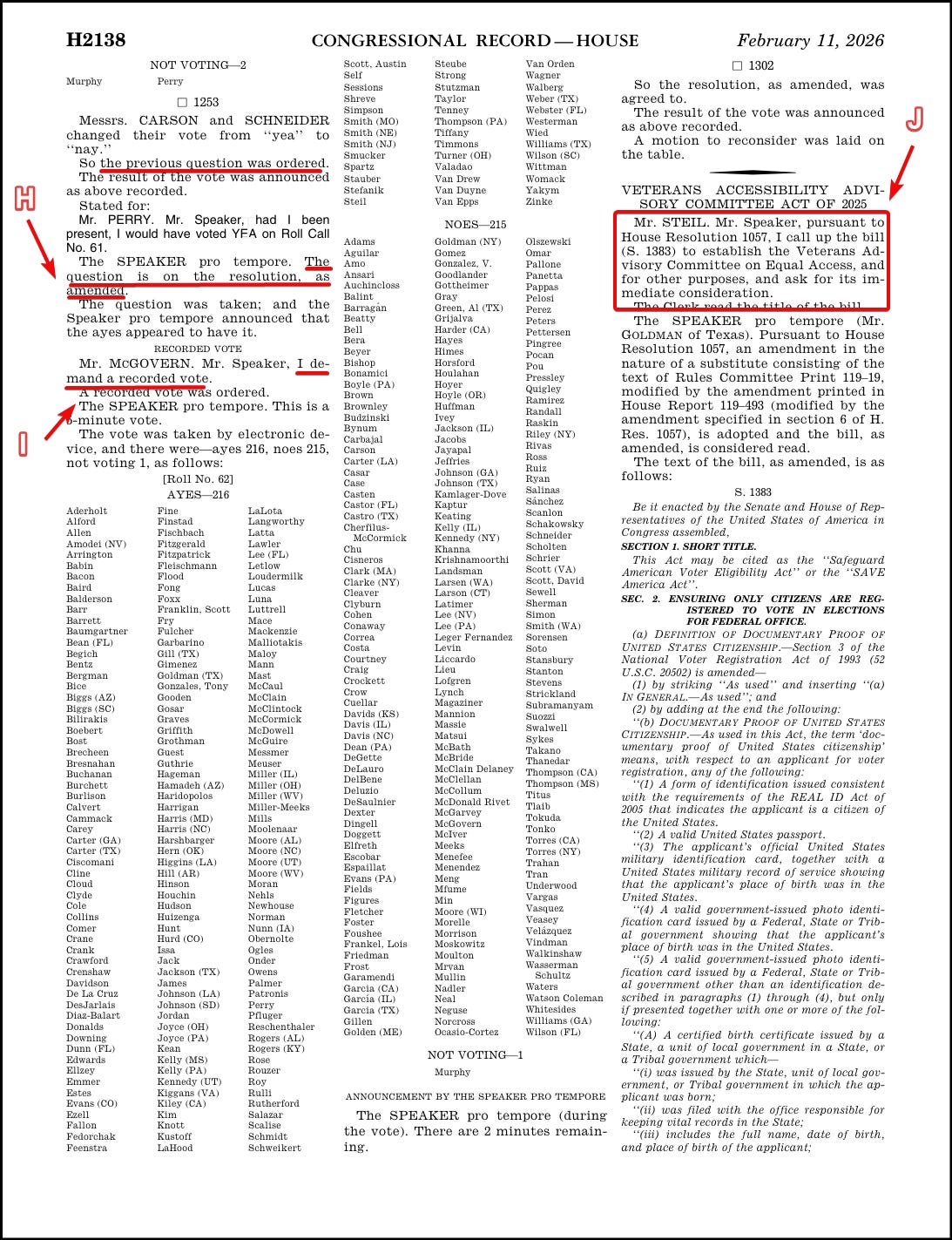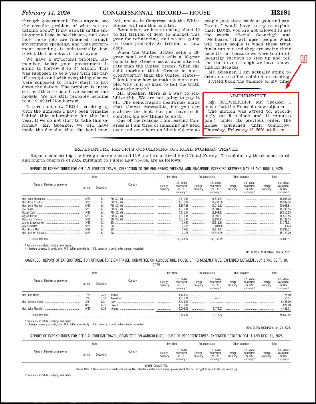 Let’s start. It’s the morning of February 12, 2026.1 You crack open yesterday’s congressional record from Wednesday, February 11th and turn to the proceedings of the House. We can walk through it, letter by letter.
