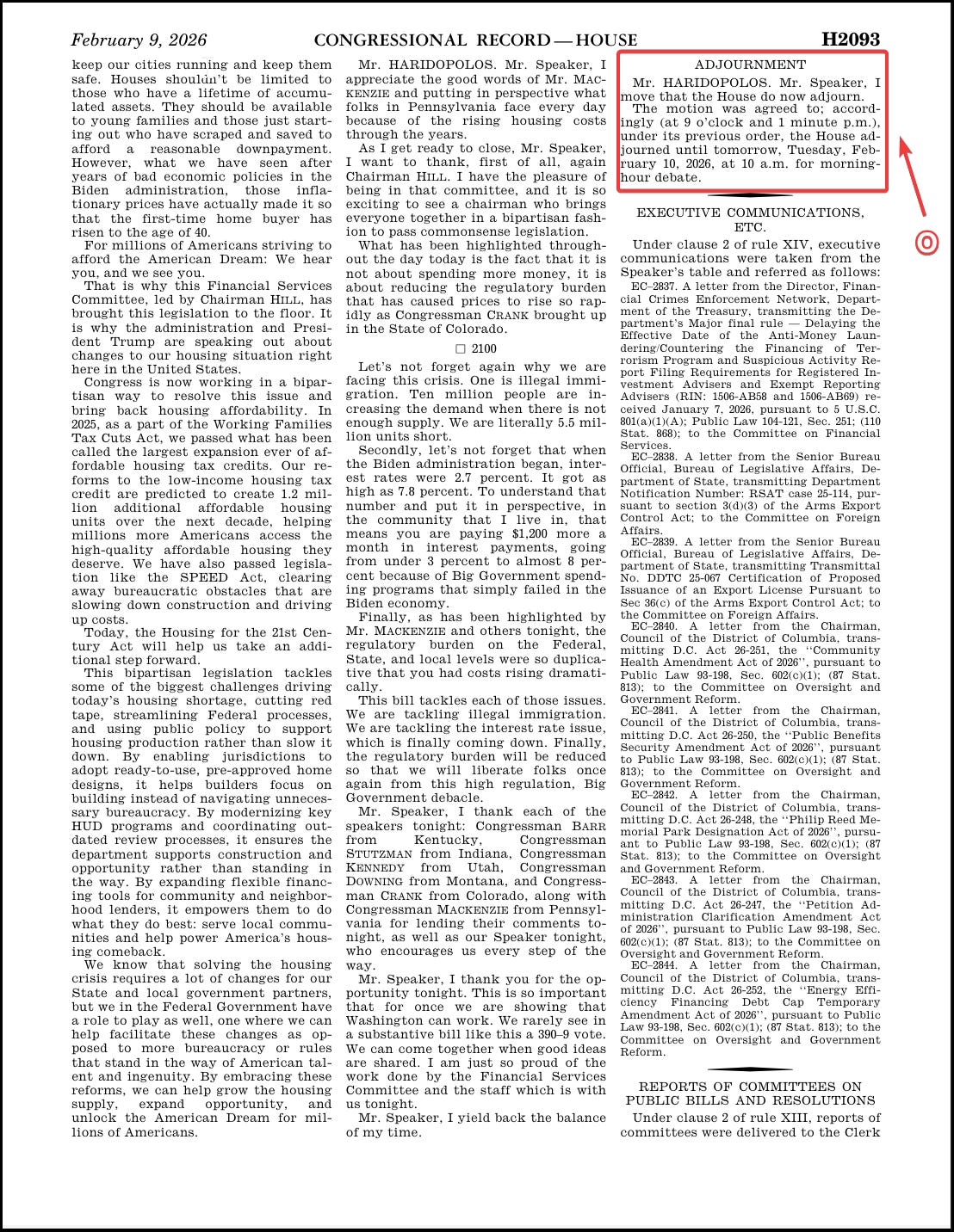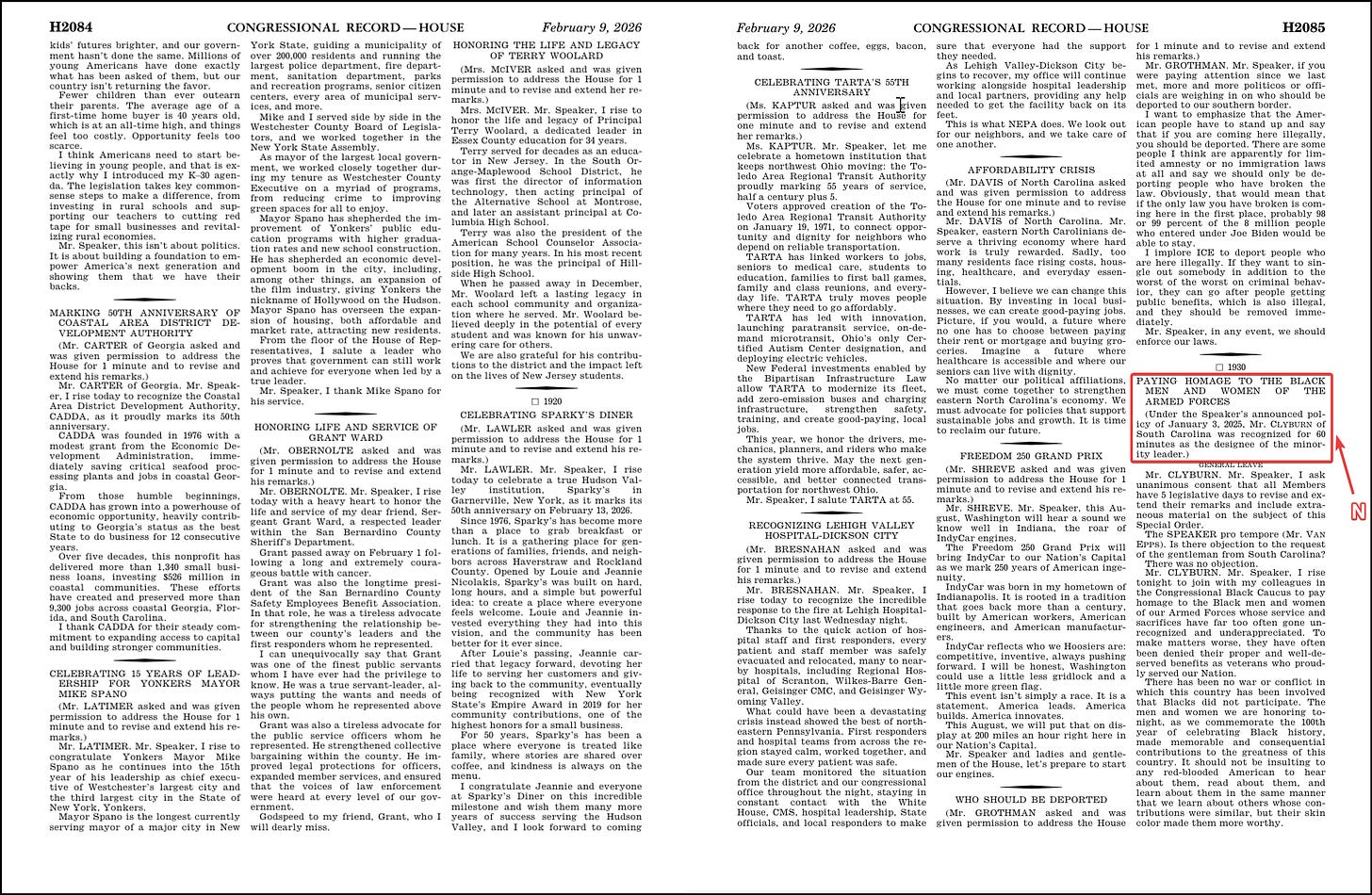 Let’s start. It’s the morning of February 10, 2026. You crack open yesterday’s congressional record and turn to the proceedings of the House. We can walk through it, letter by letter.