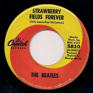 1. Strawberry Fields Forever, The Beatles. This is probably the winner. The Beatles had begun recording for what became Sgt. Pepper's Lonely Hearts Club Band, but Capitol records was interested in having a single, stat. So they took the first two tracks recorded for the album --- Penny Lane and Strawberry Fields Forever --- and put them on what they called "a double A-side." And then left them off of the new album. It's amazing to imagine what Sgt. Pepper could have been if you put those two songs on it and, say, dumped Within You, Without You. There are many other Beatles candidates, since they often left singles off their albums. One that comes to mind is the up-tempo version of Revolution, which appeared originally as the B-side to the Hey Jude single.